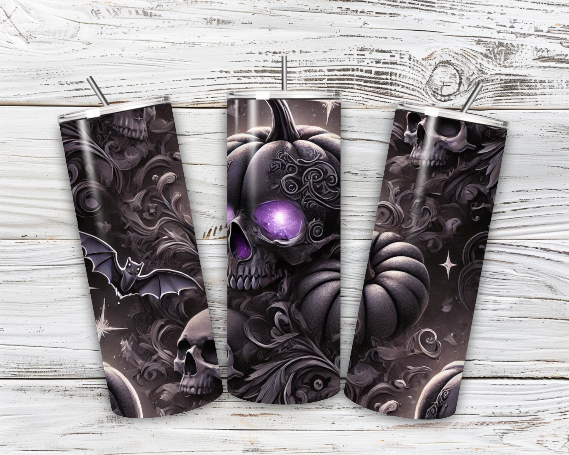 This 20oz skinny tumbler brings the ultimate dark gothic Halloween style straight into your everyday life! 🦇💀🎃