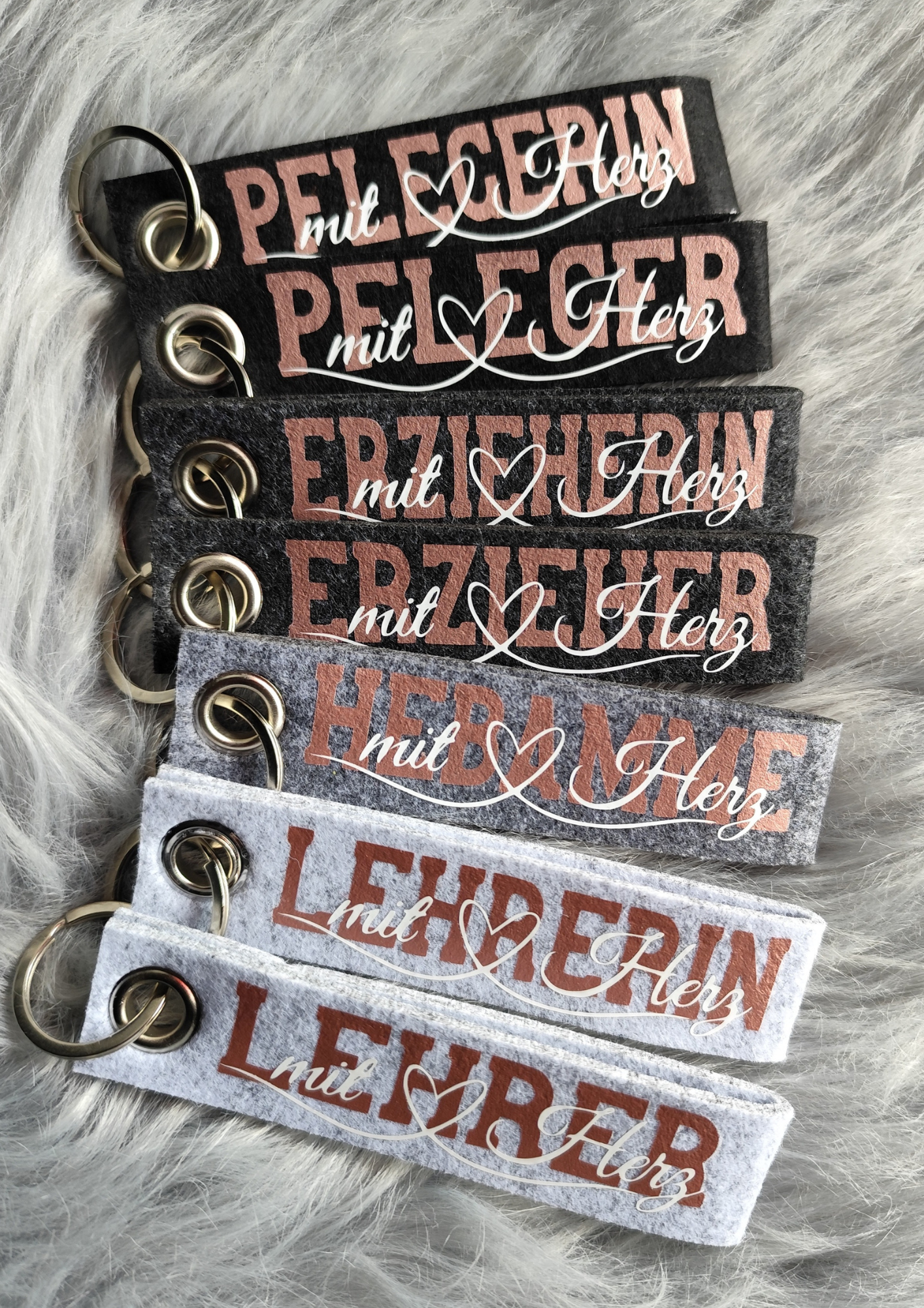 ObΒ Pflegerin, Erzieherin, Lehrerin oder Hebamme β dieser handgemachte Filz-SchlΓΌsselanhΓ€nger ist ein liebevolles DankeschΓΆn fΓΌr alle, die ihren Beruf mit Leidenschaft ausΓΌben.