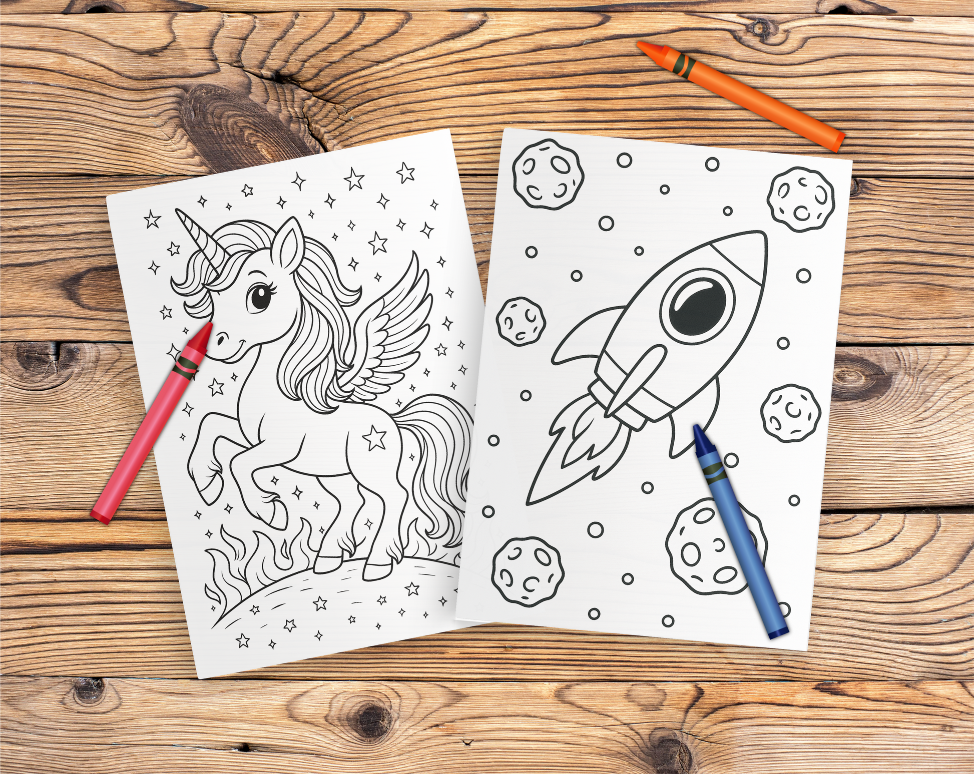 47 Coloring Pages as PNG Download | Children's Coloring Page Set to Print | Animals, Dinosaurs, Cars, Airplanes, Christmas