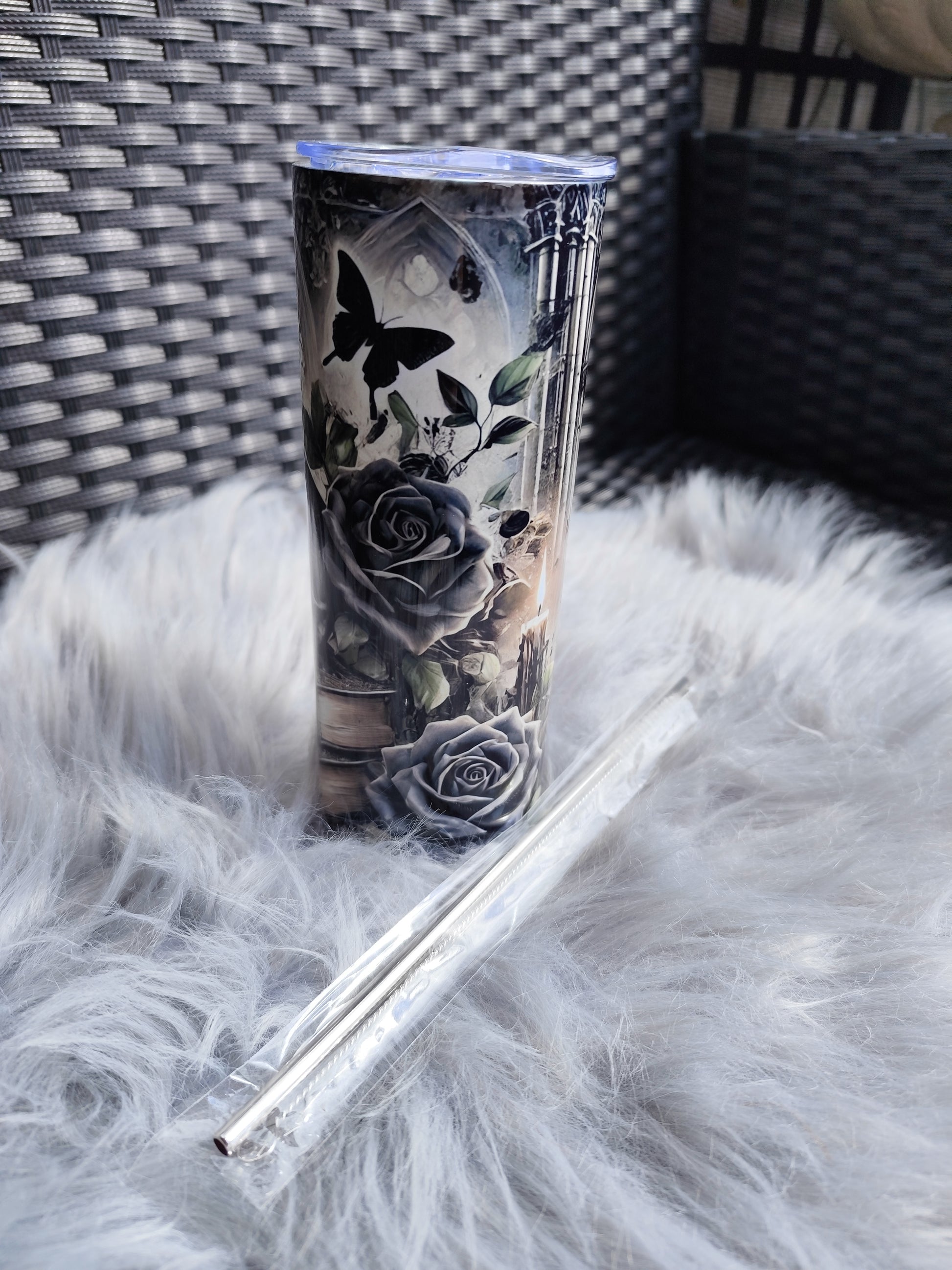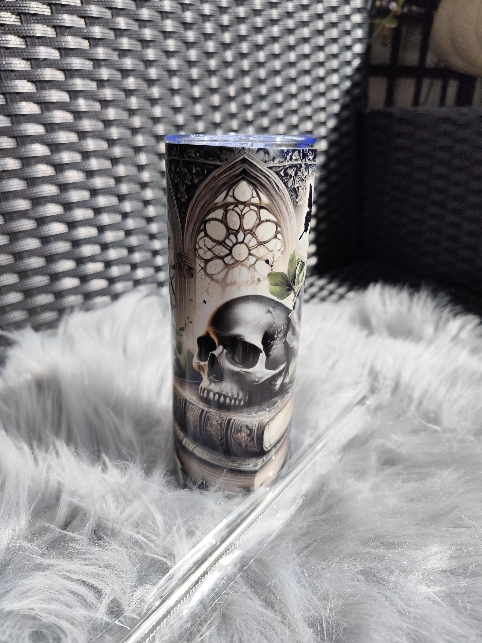 🖤 Gothic Skull & Roses Tumbler – 20oz stainless steel mug with straw & lid