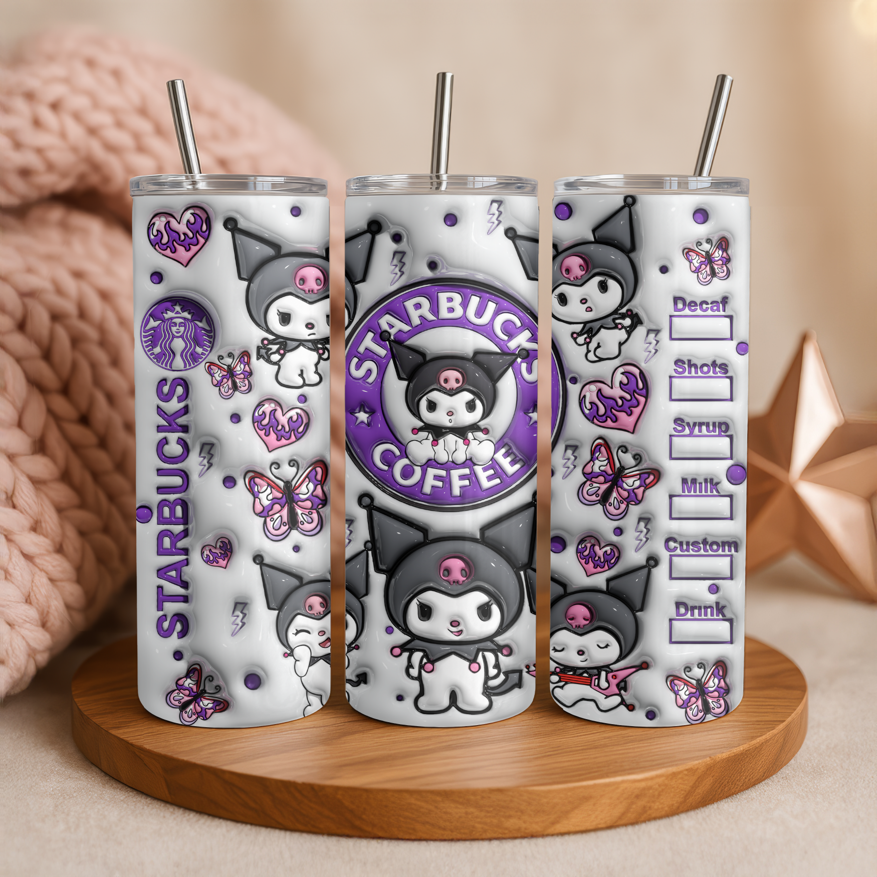 Kuromi Tumbler 20oz | Kawaii mug with straw & lid | Various Kuromi designs | Thermal mug for Sanrio and Hello Kitty fans